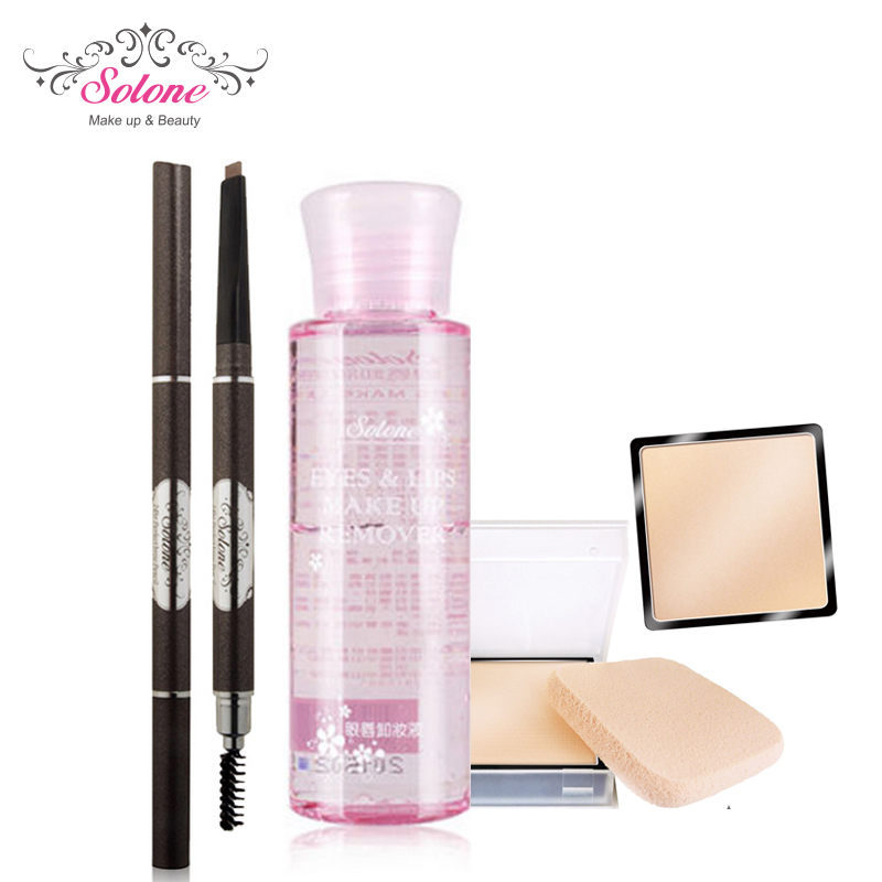 Solone 眼部套装眉笔不晕染 粉饼定妆遮瑕 卸妆液 彩妆套装裸妆