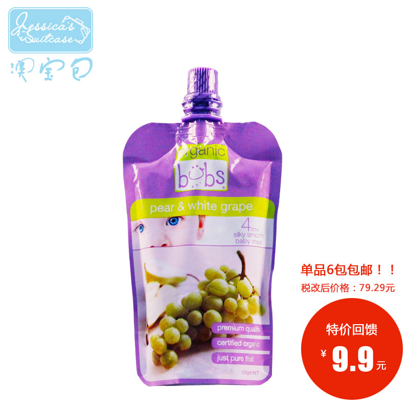 澳洲进口 Bubs贝儿 有机果泥 宝宝辅食 梨白葡萄 4个月+ 120g
