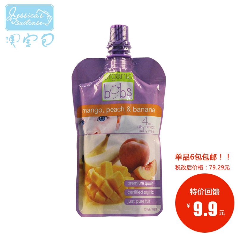澳洲进口 Bubs贝儿 有机果泥宝宝辅食 芒果桃子香蕉 4个月+ 120g