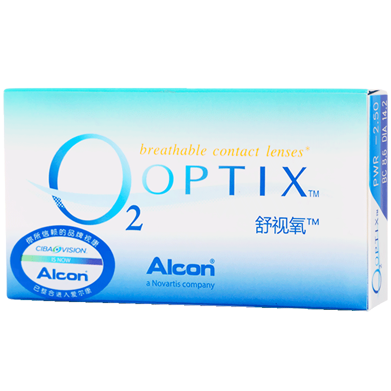 送护理液+伴侣盒】爱尔康视康舒视氧O2近视月抛6片装透明隐形眼镜