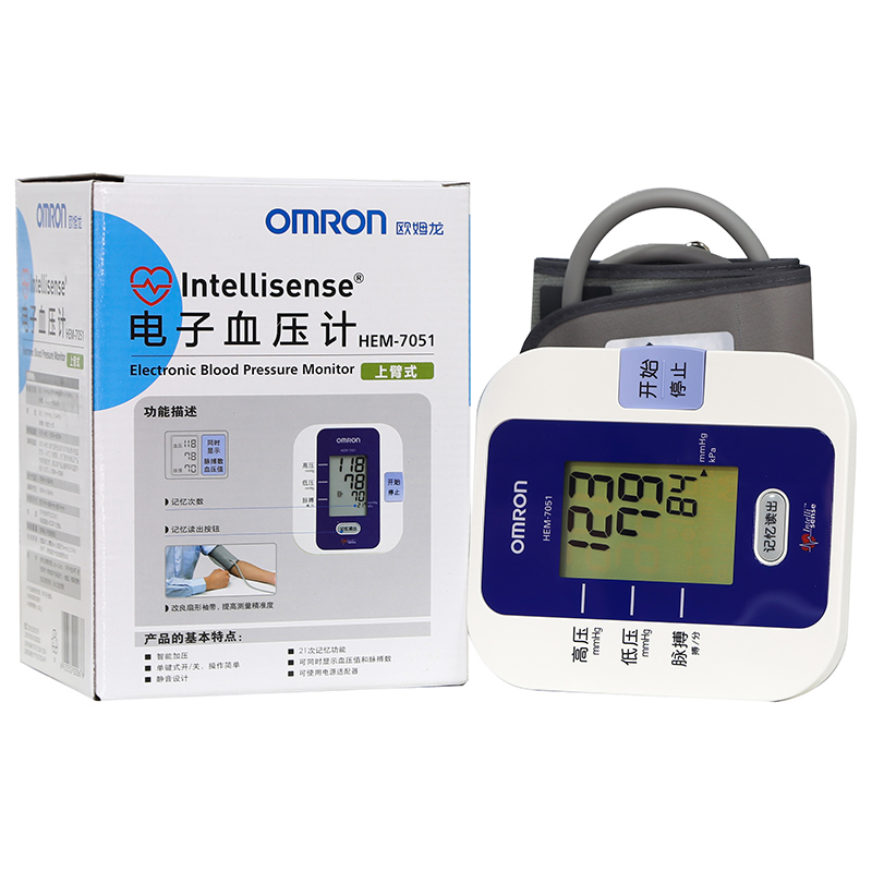 欧姆龙电子血压计家用上臂式 智能全自动血压测量仪器 HEM-7051