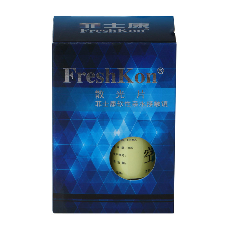 产地:广东 直径:13.6mm-14.2mm 含水:38%-42% 佩戴周期:年抛 品牌:Freshkon/菲士康 材质:HEMA 度数:平光 包装规格:瓶[内含1片] 型号:菲士康定制片 生产企业:中山超亮力隐形眼镜有限公司 隐形眼镜及护理液产品名称:菲士康近视散光年抛型隐形眼镜 可定制 批准文号:国食药监械(准)字2006第3221167号(更) 厚度:以定制度数而异 查看全文