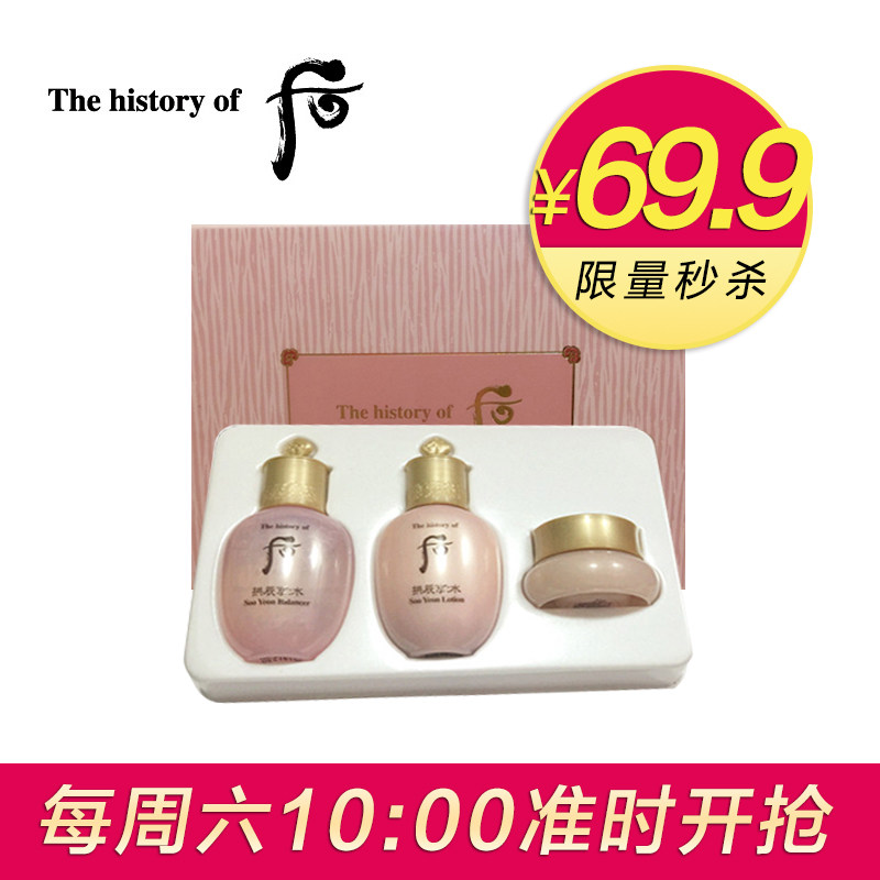 颜色分类:旅行装-[后]拱辰享水妍水乳霜三件套 20+20+4ml 功效:美白 补水 保湿 提亮肤色 滋润 舒缓肌肤 规格类型:小样 品牌:WHOO/后 品名:旅行装拱辰享水妍 适合肤质:任何肤质 产地:韩国 保质期:3年 查看全文
