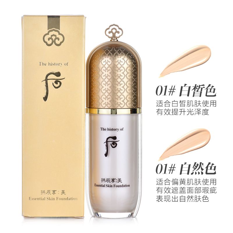 净含量:40ml 粉底分类:其他/other 颜色分类:1号 是否防晒:是 规格类型:正常规格 品牌:WHOO/后 粉底液/膏单品:拱辰享美 精华粉底乳 SPF30/PA++ 功效:提亮肤色 遮瑕 防晒 美白 适合肤质:任何肤质 产地:韩国 保质期:3年 查看全文