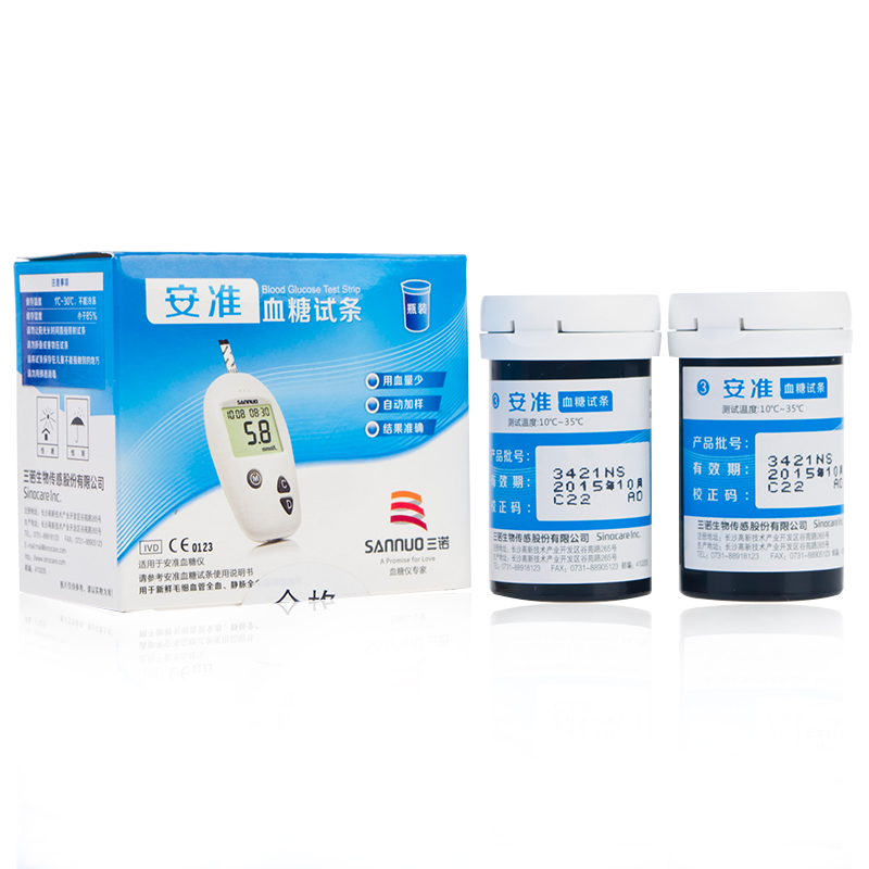 是否为进口:否 产地:长沙 品牌:三诺 型号:安准 生产企业:三诺生物传感股份有限公司 医疗器械产品名称:血糖试纸 疾病:低血糖症 适用人群:不限.成人.老年 执行标准号:YZB/湘0044-2012 血糖用品:血糖试纸+针头.血糖试纸.血糖用品配件 增值服务:大部分地区包邮 颜色分类:三诺安准瓶装50片试纸(试纸效期17年8月).三诺安准瓶装100片试纸.三诺安准瓶装150片试纸.三诺安准瓶装200片试纸.三诺安准独立装50片试纸(试纸效期16年11月).三诺安准独立装100片试纸.三诺安准独立装200片试纸 批准文号:湘食药监械( 准)字2008第2400071号 查看全文