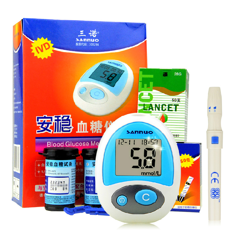 是否为进口:否 品牌:三诺 疾病:低血糖症.糖尿病 执行标准号:YZB/湘0042-2012 型号:安稳型 批准文号:湘食药监械(准)字2012第2400053号 产地:湖南 血糖用品:血糖仪+试纸+针头组合套装.血糖试纸+针头.采血针/采血器.血糖试纸.血糖仪器.血糖用品配件 适用人群:不限.儿童.成人.老年 生产企业:长沙三诺生物传感技术有限公司 增值服务:免费校准 医疗器械产品名称:血糖仪及血糖仪试纸 颜色分类:仪器+50独立试纸+针头.仪器+50片桶装试纸+针头.仪器+100片桶装试纸+针头.50桶装试纸+针头.50独立试纸+针头.安稳裸机(无试纸).仪器+100片独立试纸+针头.100片独立试纸+针头.100片桶装试纸+针头.150片桶装试纸+针头.200片桶装试纸+针头.150片独立试纸+针头.200片独立试纸+针头.仪器+150片桶装试纸+针头.仪器+25独立试纸+针头.仪器+200片桶装试纸+针头.仪器+150片独立试纸+针头.仪器+200片独立试纸+针头.25片独立试纸.仪器+25桶装试纸+针头 查看全文