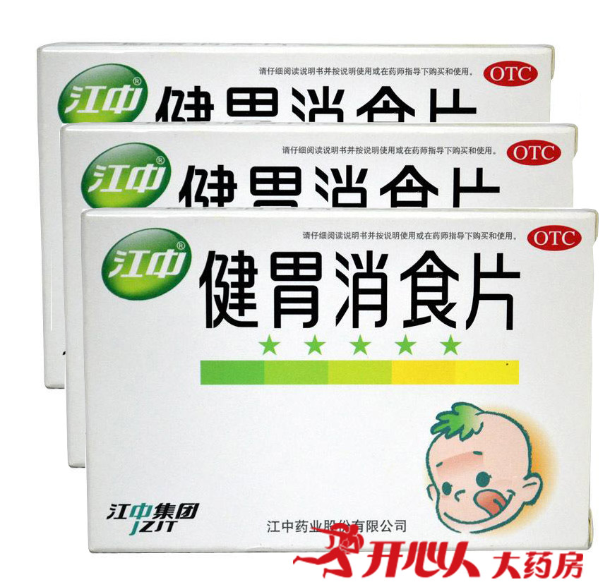 产品剂型:片剂 有效期:24个月 药品分类:非处方药 用法:口服 适用人群:儿童 类别:中药 品牌:江中 使用剂量:一次4~6片,一日三次。 批准文号:国药准字Z36021464 生产企业:江中药业股份有限公司 疾病:小儿厌食症.食积证 症状:消化不良.脘胀腹满.食欲不振 药品名称:健胃消食片 药品通用名:健胃消食片 规格:0.5g*36片/盒 查看全文
