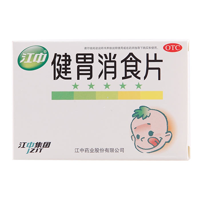 产品剂型:片剂 适用人群:不限 有效期:24个月 药品分类:非处方药 用法:口服 类别:中药 品牌:江中 生产企业:江中药业股份有限公司 药品名称:健胃消食片 药品通用名:健胃消食片 使用剂量:一次3片,一日3次 疾病:食积证.消化不良.厌食症 症状:食积不化.食欲不佳.胃胀.消化不良 批准文号:国药准字Z20013220 规格:0.8g*32片/盒 查看全文