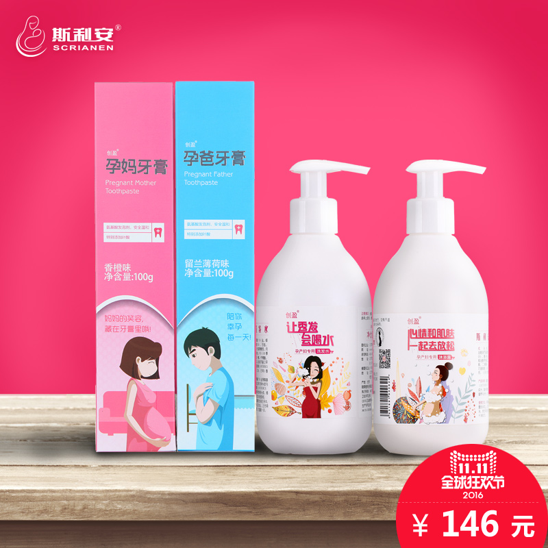 孕期洗护套装 孕爸孕妈牙膏 孕妇沐浴露 洗发水 含叶酸 无硅油
