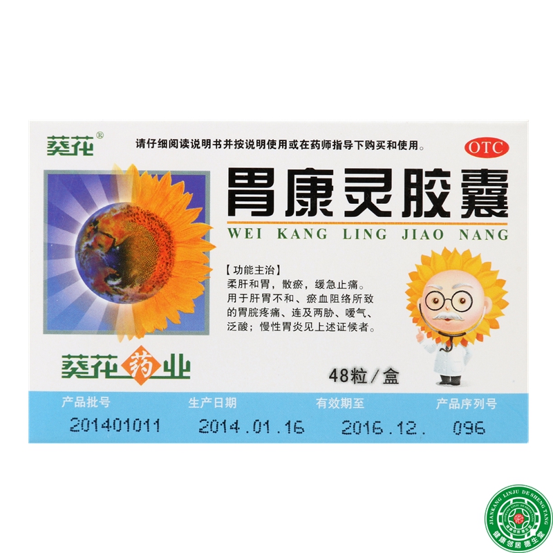 葵花胃康灵胶囊48粒3盒柔肝和胃散瘀缓急止痛用于胃炎胃脘痛包邮