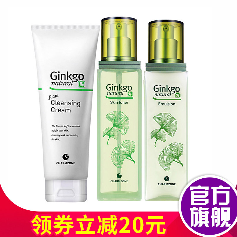 婵真银杏清爽补水保湿滋润白皙舒缓肌肤三件套护肤品套装