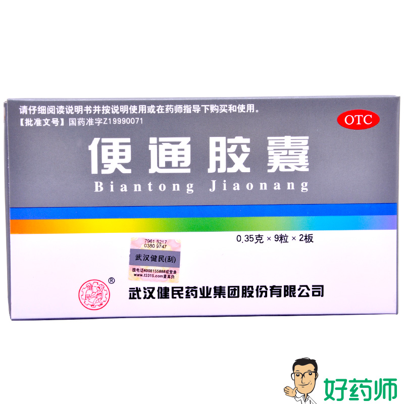 产品剂型:胶囊 适用人群:不限 有效期:24个月 药品分类:非处方药 用法:口服 类别:中药 症状:大便秘结 使用剂量:一次3粒,一日2次 生产企业:武汉健民药业集团股份有限公司 品牌:健民 套餐类型:套餐一.标准装 疾病:脾虚.肛周炎.便秘 药品名称:便通胶囊 药品通用名:便通胶囊 批准文号:国药准字Z19990071 规格:0.35g*18粒/盒 查看全文
