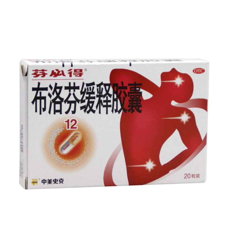 产品剂型:胶囊 药品分类:非处方药 用法:口服 适用人群:成人 有效期:36个月 类别:化学药 生产企业:中美天津史克制药有限公司 使用剂量:成人,一次1粒,一日2次(早晚各一次 品牌:芬必得 疾病:中耳炎.扁桃体炎 症状:头痛.肌肉痛.疼痛.牙痛.痛经.关节痛.神经痛 药品名称:布洛芬缓释胶囊 药品通用名:布洛芬缓释胶囊 批准文号:国药准字H10900089 规格:0.3g*20粒/盒 查看全文