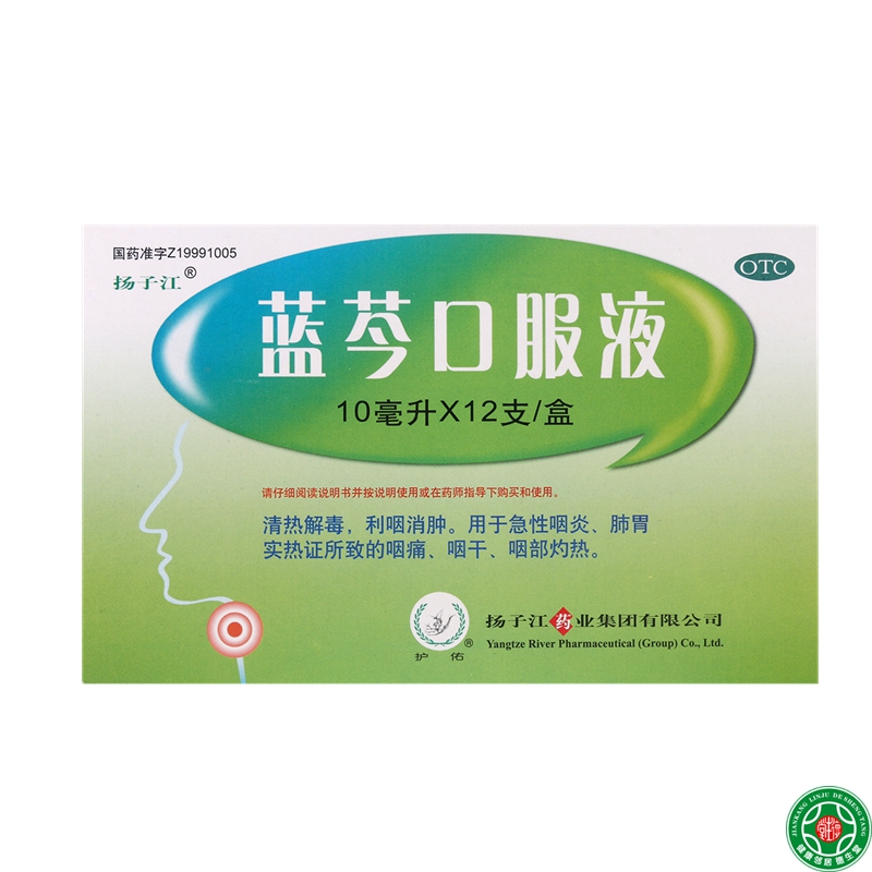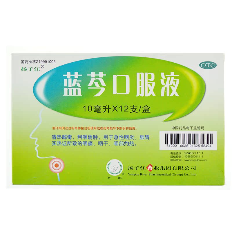 包邮 扬子江 蓝芩口服液12支 急性咽炎 咽痛咽干灼热 清热解毒