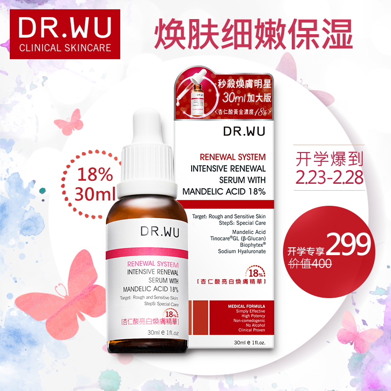 DR.WU/达尔肤杏仁酸温和焕肤精华液18%30ml 缩小毛孔 淡斑祛痘女
