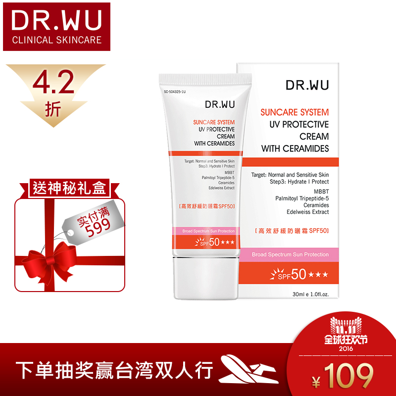 DR.WU/达尔肤高效舒缓防晒霜SPF50敏感泛红肌肤可用防止晒伤晒黑