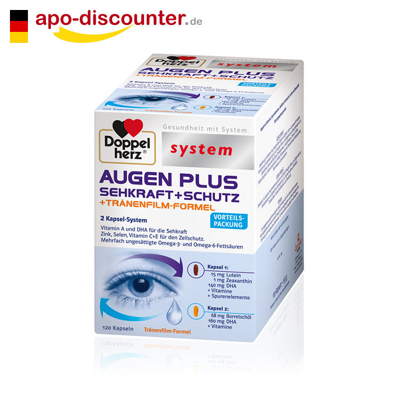 德国双心Doppelherz叶黄素鱼油护眼120粒 效果加倍 青少年中老年