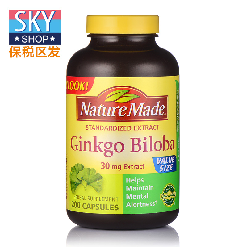美国Nature Made 银杏精华胶囊200粒 银杏叶提取物 中老年保健品