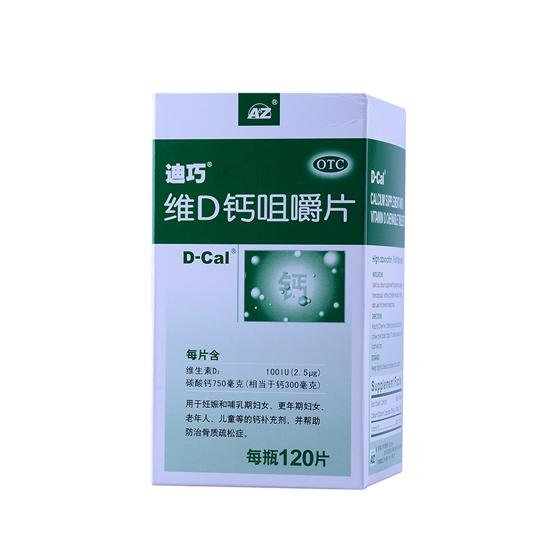 产品剂型:片剂 适用人群:不限 药品分类:非处方药 套餐类型:标准装 用法:口服 有效期:36个月 类别:复方制剂 品牌:D-Cal/迪巧 药品名称:迪巧 维D钙咀嚼片 药品商品名:迪巧 药品通用名:维D钙咀嚼片 批准文号:国药准字J20140154 生产企业:美国安士制药有限公司 规格:120片*1瓶/盒 使用剂量:儿童,一次1片;成人,一次2片,一日1次。 查看全文