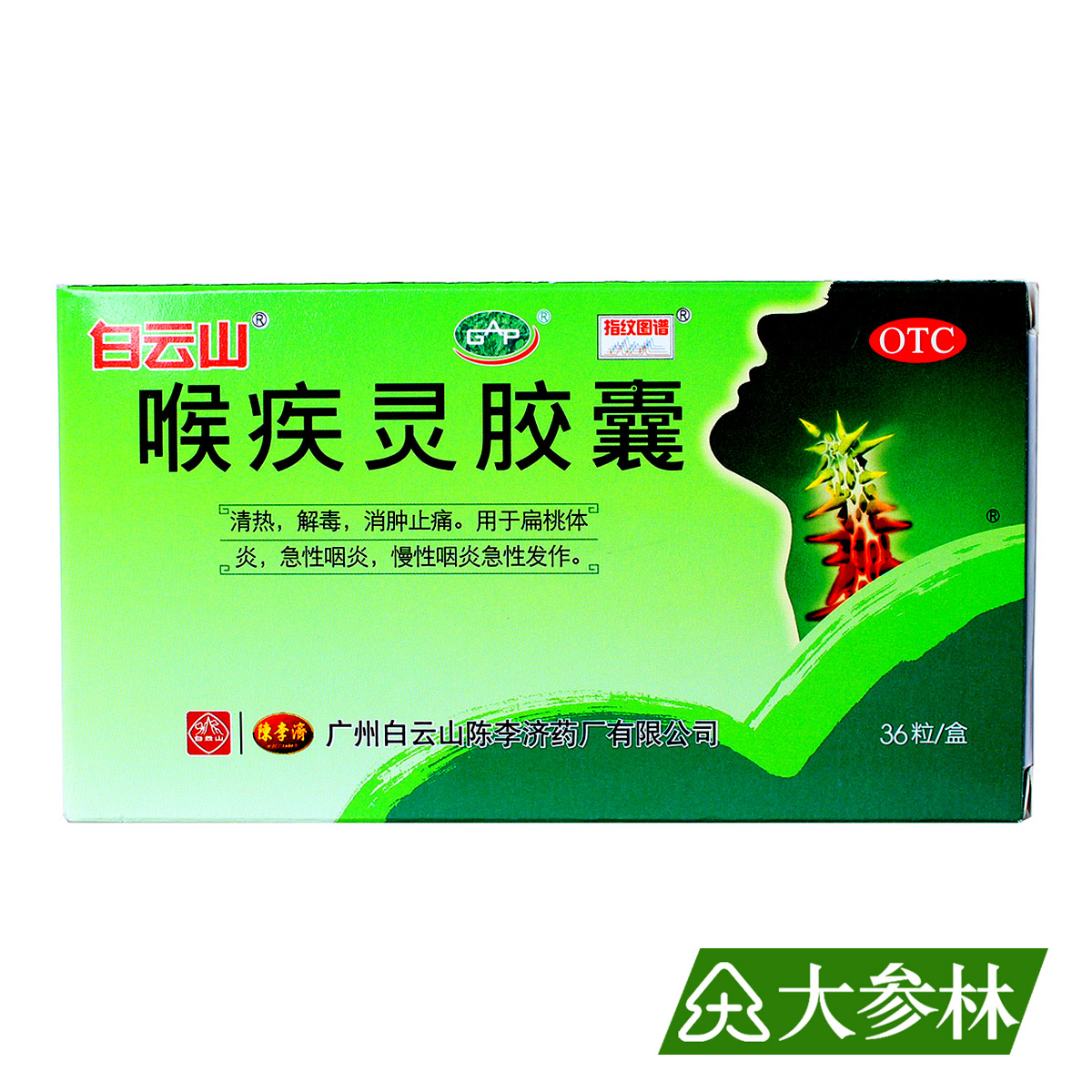 白云山 喉疾灵胶囊 36粒 清热解毒消肿止痛 急慢性咽炎 扁桃体炎