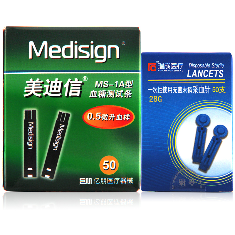 【送血糖仪】美迪信MS-1A血糖测试条50条家用血糖仪试纸附采血针