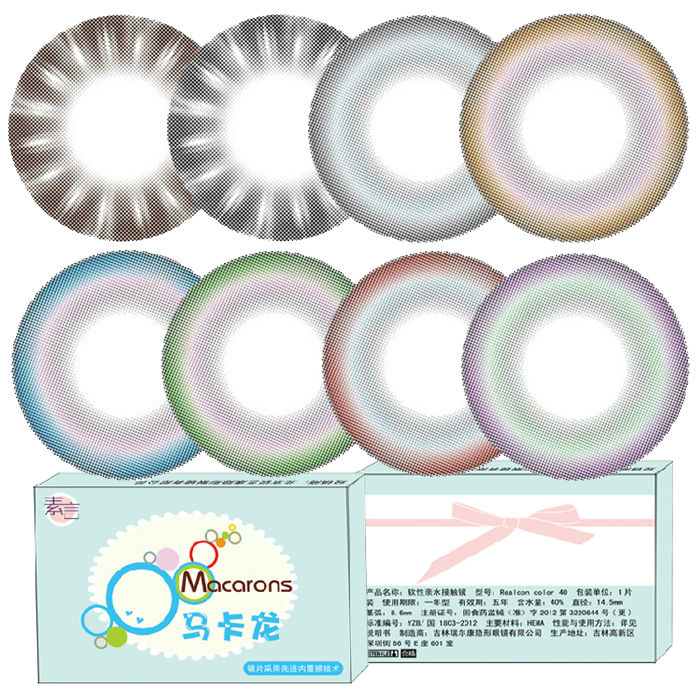 厚度:0.051mm以上 含水:38%-42% 度数:0.100.125.150.175.200.225.250.275.300.325.350.375.400.425.450.475.500.550.600.650.700.750.800 佩戴周期:年抛 规格:一片装 产地:吉林 直径:14.3mm-14.9mm 品牌:瑞尔康 批准文号:国食药监械(准)字2012第3220644号(更) 隐形眼镜及护理液产品名称:马卡龙 颜色分类:绿色.蓝色.巧克力色.棕色.浅灰色.酒红色.紫色.深灰色 查看全文