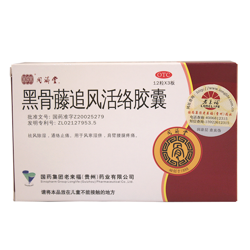 产品剂型:胶囊 适用人群:不限 药品分类:非处方药 用法:口服 类别:中药 有效期:30个月 套餐类型:套餐二.标准装 使用剂量:一次3粒,一日3次 品牌:同济堂 批准文号:国药准字Z20025279 生产企业:贵州老来福药业有限公司 疾病:痛风.风湿性多肌痛 症状:腰腿酸痛.风寒湿痹 药品名称:黑骨藤追风活络胶囊 药品通用名:黑骨藤追风活络胶囊 规格:0.3g*72粒/盒 查看全文