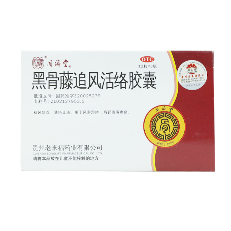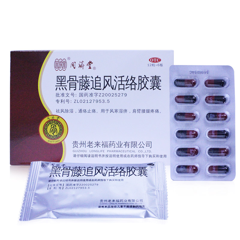 产品剂型:胶囊 药品分类:非处方药 用法:口服 适用人群:成人 类别:中药 有效期:30个月 疾病:肩周炎.风湿骨痛 品牌:同济堂 生产企业:贵州老来福药业有限公司 药品名称:黑骨藤追风活络胶囊 药品通用名:黑骨藤追风活络胶囊 套餐类型:套餐二.套餐三.标准装 规格:0.3g*36粒/盒 使用剂量:一次3粒,一日3次,2周一疗程 批准文号:国药准字 Z 20025279 症状:腰痛.腰腿酸痛.风寒湿痹 查看全文