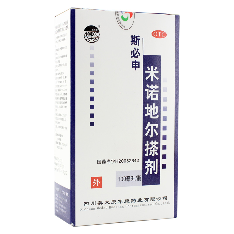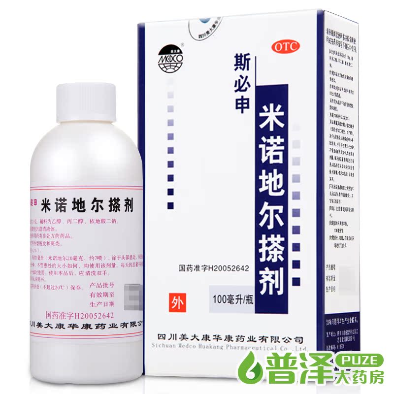 用法:皮肤外用 药品分类:非处方药 适用人群:成人 有效期:36个月 规格:100ml*1瓶/盒 类别:化学药 产品剂型:外用液体剂 疾病:斑秃.脱发 症状:脱发 药品通用名:米诺地尔搽剂 品牌:美大康 药品名称:米诺地尔搽剂 批准文号:国药准字H20052642 生产企业:四川美大康华康药业有限公司 使用剂量:局部外用,每次1毫升(米诺地尔20毫升,约7喷),涂于头部患处 查看全文