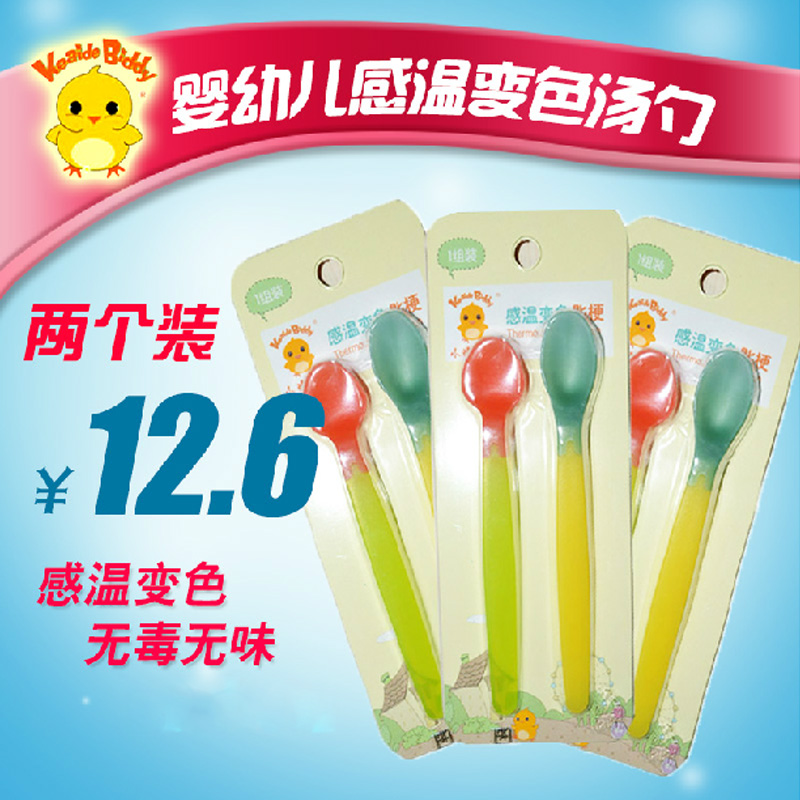 的热门产品小鸡卡迪婴儿勺子宝宝餐具新生儿感温变色汤勺软饭勺2个装KD4025