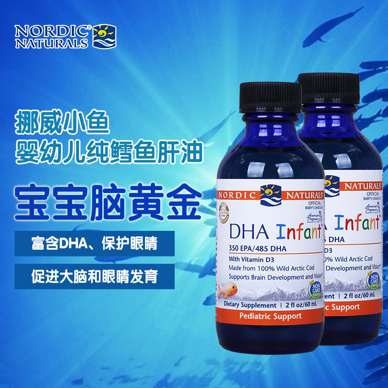 挪威小鱼Nordic Naturals婴幼儿鳕鱼油 婴儿DHA鱼油滴剂 60ml*2瓶