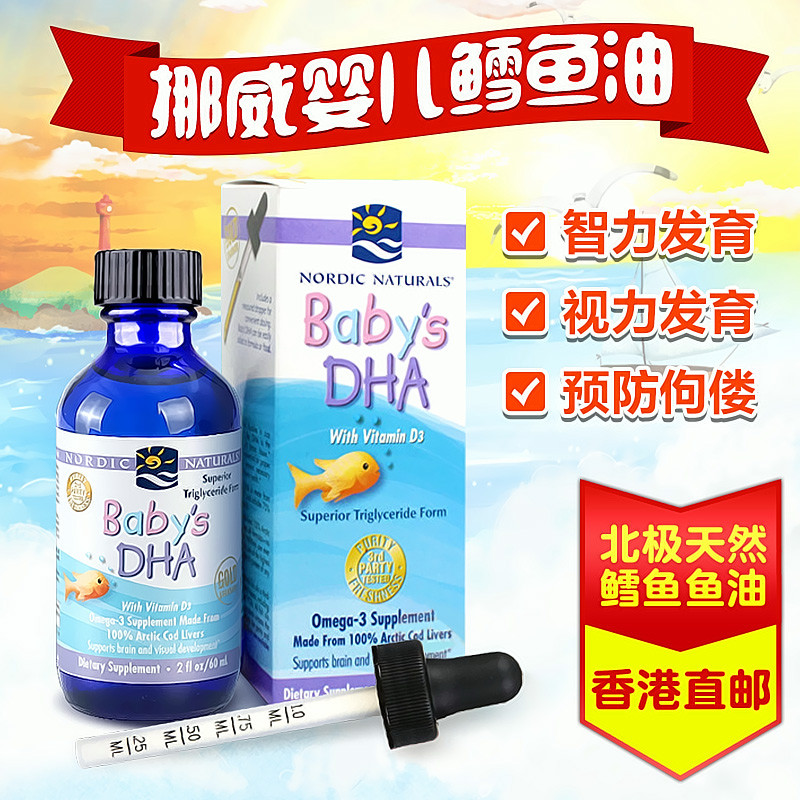 挪威小鱼Nordic Naturals儿童鱼油宝宝鱼肝油婴儿dha鱼油滴剂60ml