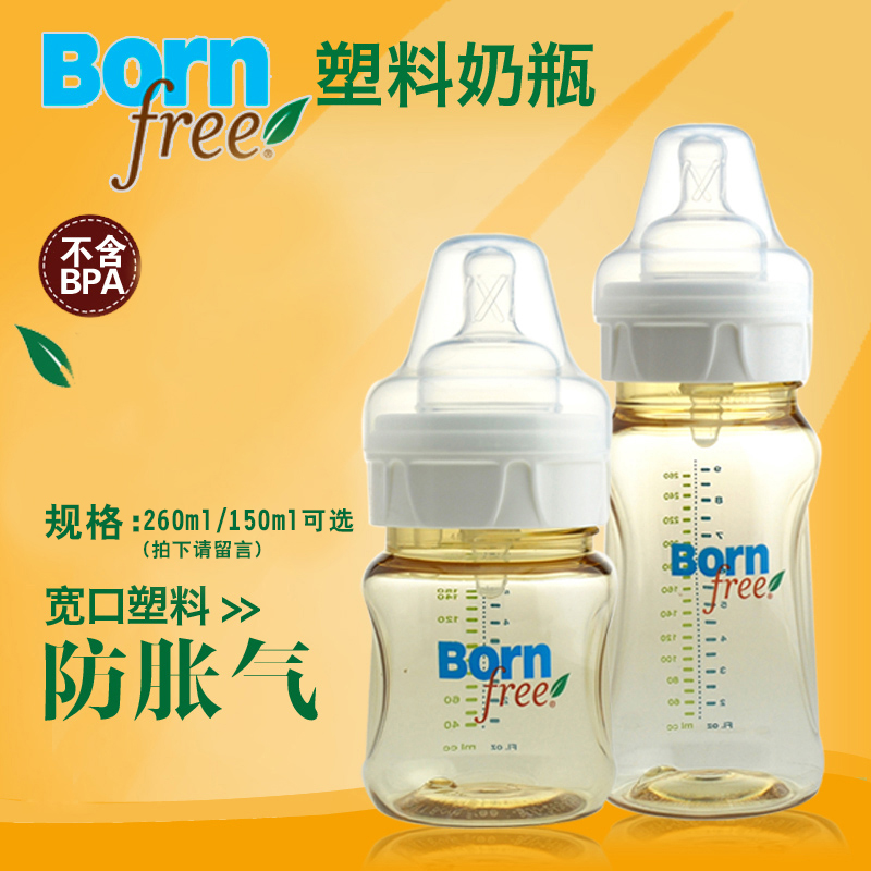 born free婴儿防胀气宽口径防摔塑料奶瓶260ml 150ml二选一