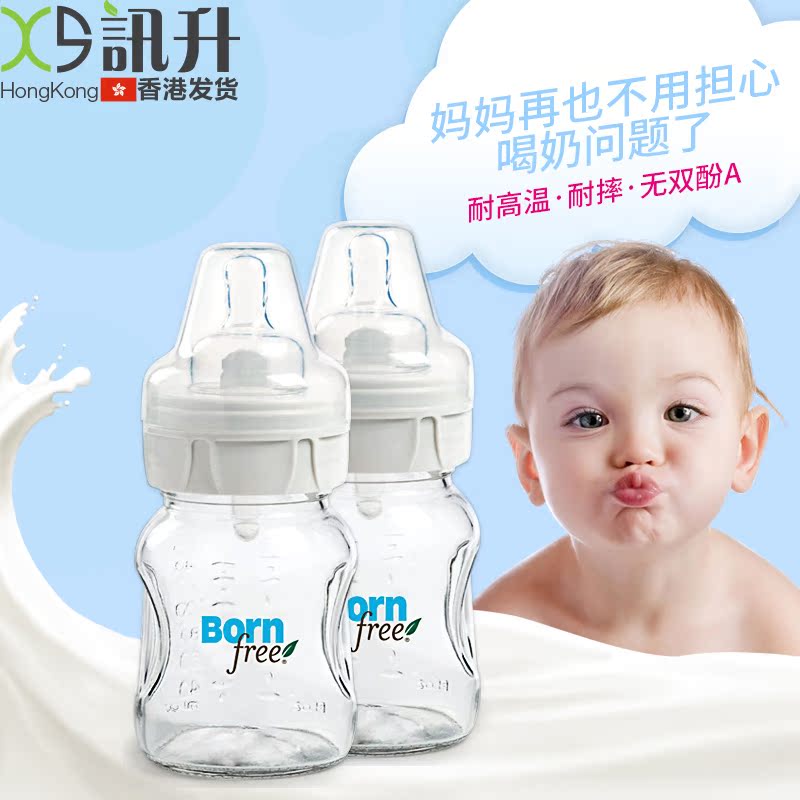 born free婴儿婴幼儿宽口径150ml耐高温耐摔防胀气玻璃奶瓶