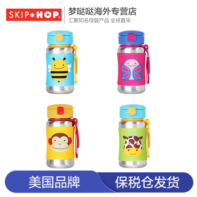 美国Skip Hop 儿童不锈钢吸管杯354ml 幼儿水杯进口宝宝水杯水壶