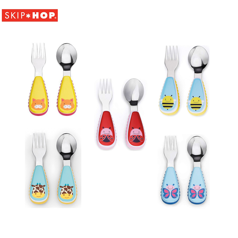 美国Skip Hop 动物园系列不锈钢宝宝叉勺套装可爱动物园餐具叉+匙