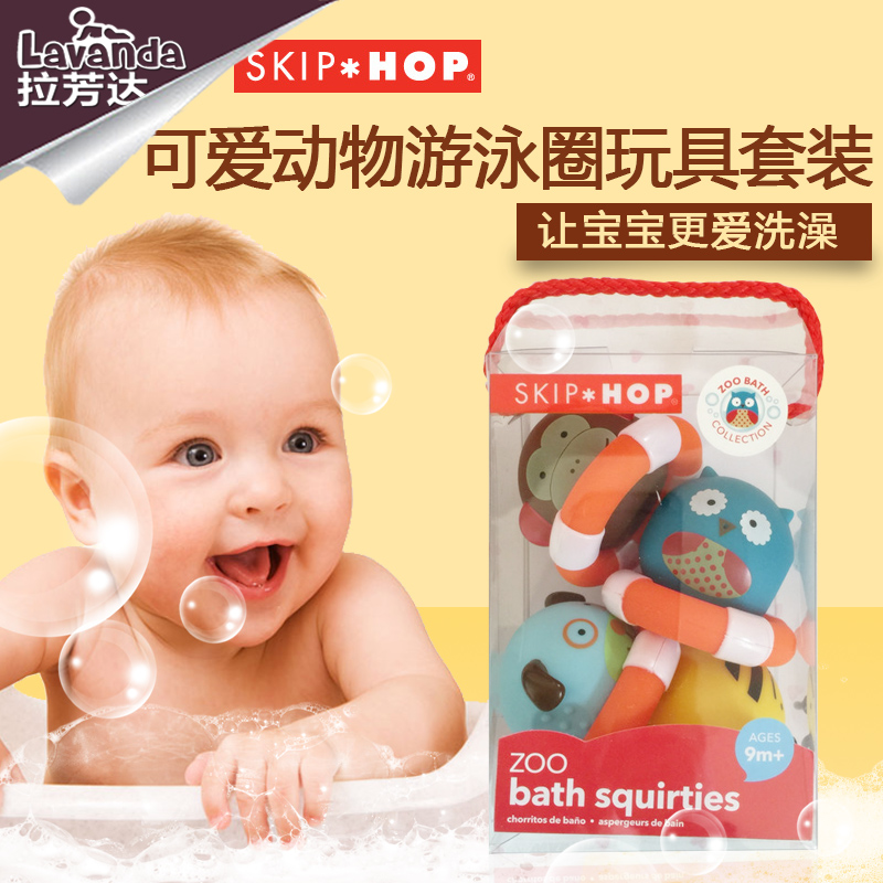 美国SKIP HOP儿童可爱动物园游泳圈戏水玩具宝宝多彩多色洗澡玩具