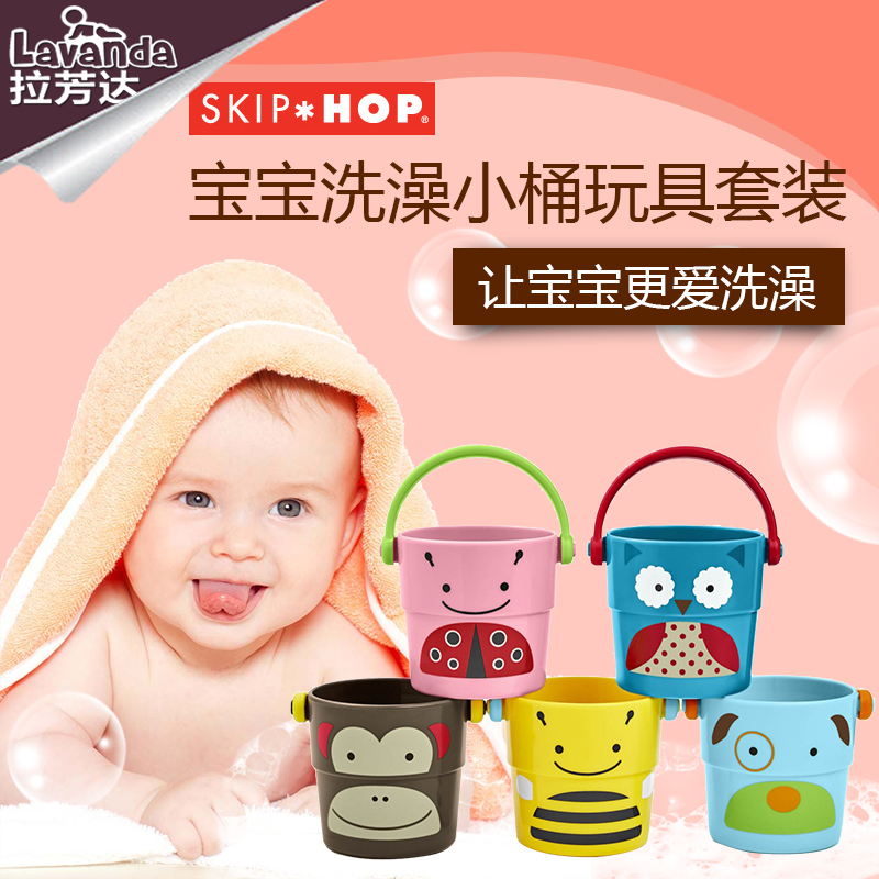 美国Skip Hop可爱动物园叠倒彩色小水桶堆叠水桶洗澡戏水玩具
