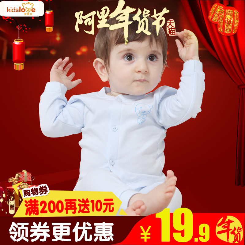 爱爱我 新生儿LOGO对襟开扣内衣套装纯棉 男女 宝宝睡衣服秋装款