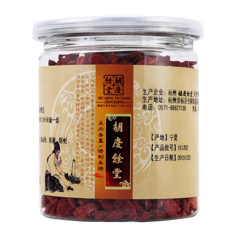 品牌:胡庆余堂 性状:茶饮 包装方式:瓶装 包装规格:200g 执行标准号:中国药典一部(2015版) 产地:宁夏回族自治区 生产企业:杭州胡庆余堂天然药物有限公司 功能主治:滋补肝肾,益精明目 存储方法:置阴凉干燥处,防闷热,防潮防蛀 饮片名称:胡庆余堂枸杞子 查看全文