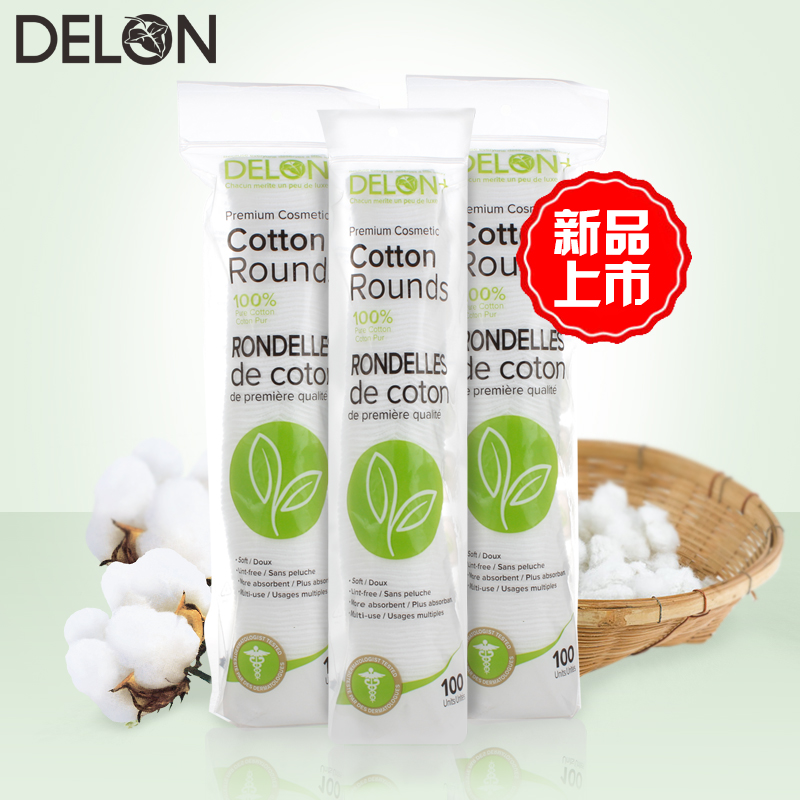 delon女生洁面卸妆棉 三层两面芦荟润肤化妆棉 100片x3条套装