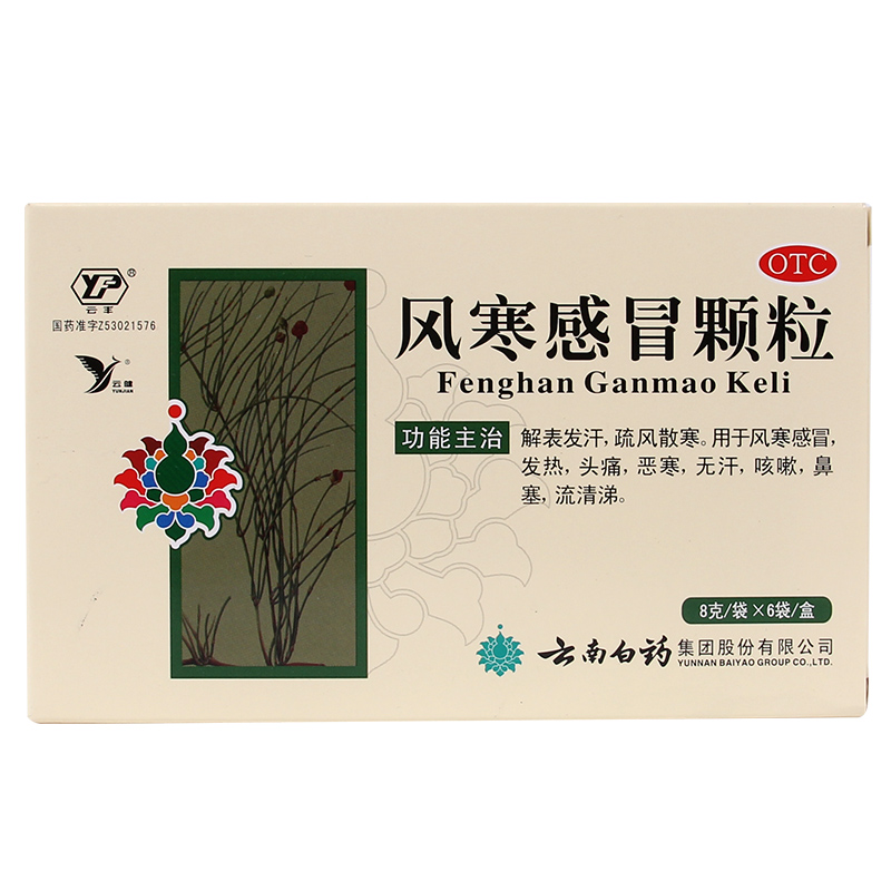 云丰 云南白药风寒感冒颗粒 6袋 发热头痛恶寒咳嗽鼻塞流鼻涕QA
