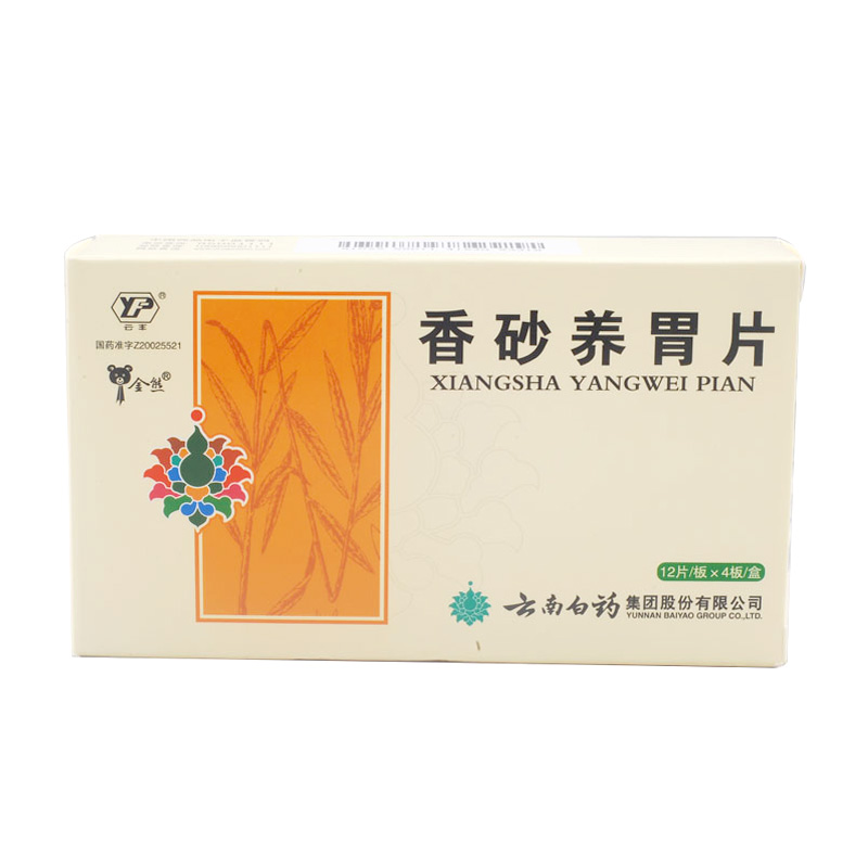 产品剂型:片剂 适用人群:不限 用法:口服 药品类别:中药 有效期:36个月 药品分类:处方药 疾病:消化不良 使用剂量:口服,一次4-8片,一日2次 生产企业:云南白药集团股份有限公司 品牌:云丰 药品规格:0.6g*48片/盒 症状:嗳气.早饱.腹痛.腹胀.食欲不振 批准文号:国药准字Z20025521 药品名称:香砂养胃片 药品通用名:香砂养胃片 查看全文