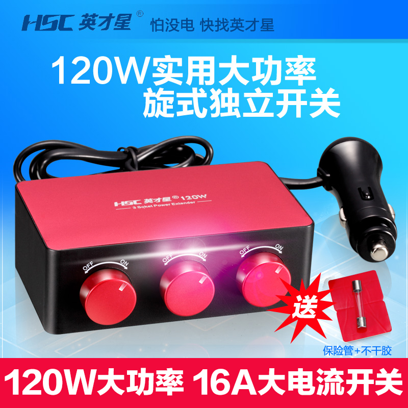 正版 英才星 带开关一拖三点烟器汽车一分三电源转换器车载充电器