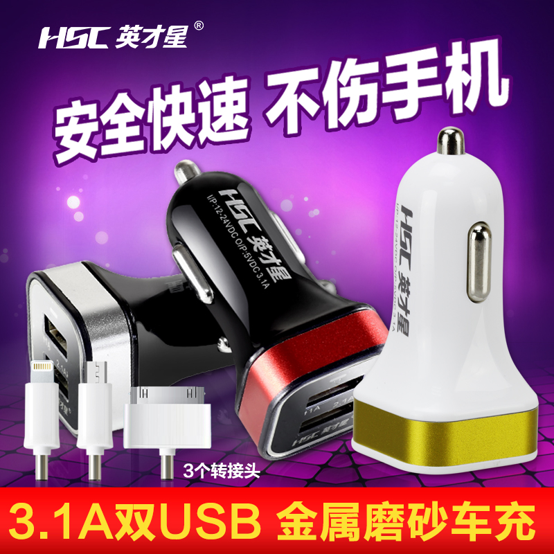 英才星多功能汽车用手机充电器点烟器车载充电器双usb车充头苹果6