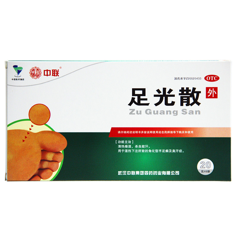 1盒包邮中联 足光散 20g*6袋/盒 清热燥湿 杀虫敛汉 手足癣 臭汗