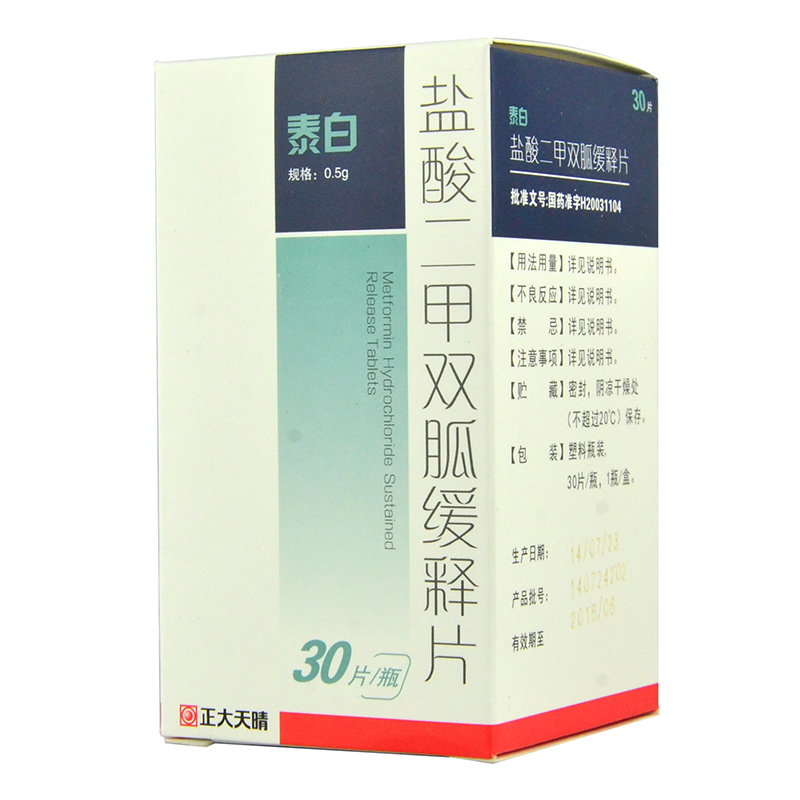 正大天晴 泰白 盐酸二甲双胍缓释片 0.5g*30片/盒