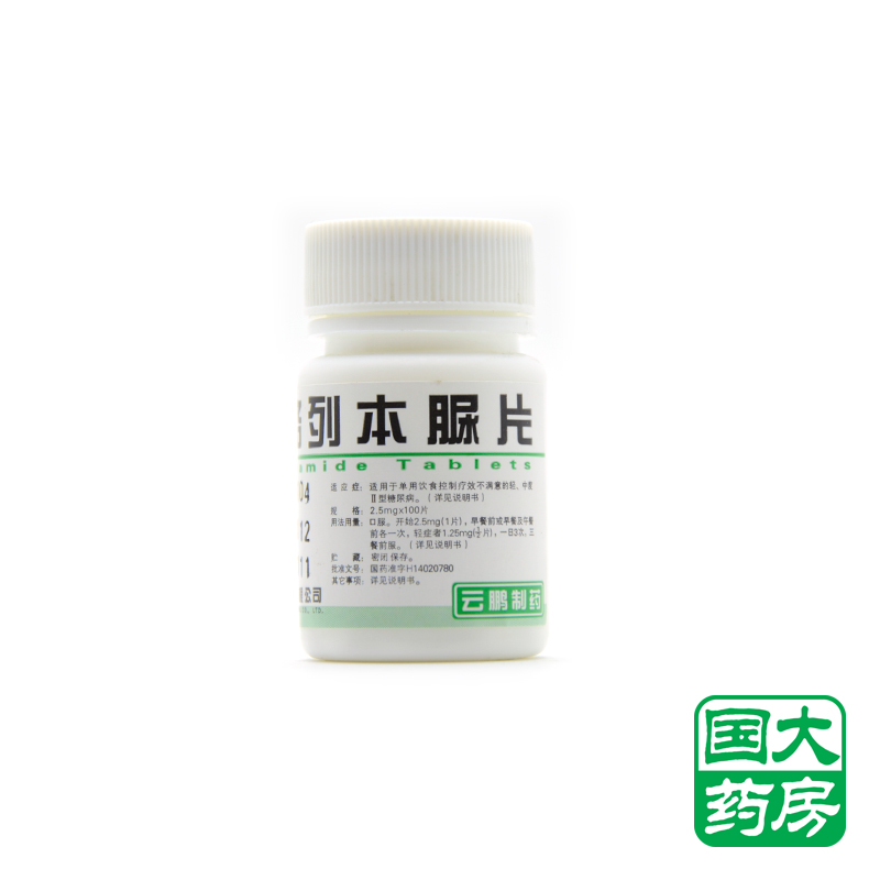 云鹏格列本脲片 2.5mg*100片/瓶