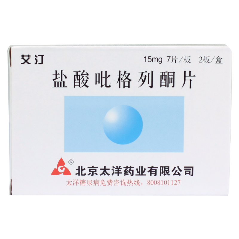 产品剂型:片剂 药品类别:化学药 用法:口服 适用人群:成人 有效期:36个月 药品分类:处方药 疾病:糖尿病 使用剂量:初始剂量一般为一次15毫克(1片)或30毫克(2片),一日一次 品牌:艾汀 批准文号:国药准字H20040267 生产企业:北京太洋药业有限公司 症状:口渴 药品名称:艾汀 盐酸吡格列酮片 药品商品名:艾汀 药品规格:15mg*7片*2板/盒 药品通用名:盐酸吡格列酮片 查看全文