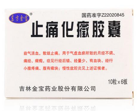 产品剂型:胶囊 用法:口服 药品类别:中药 有效期:36个月 药品分类:处方药 适用人群:妇科 疾病:盆腔炎 生产企业:吉林金宝药业股份有限公司 药品规格:0.3g*24粒/盒 症状:月经不调 使用剂量:一次4-6片,一日2-3次。 品牌:东方金宝 批准文号:国药准字Z22020845 药品名称:止痛化癥胶囊 药品通用名:止痛化癥胶囊 查看全文